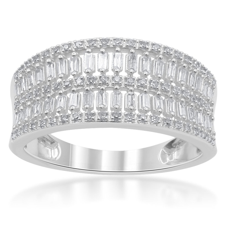 9ct White Gold 1/4 Carat Diamond Ring With 113 Brilliant and 38 Baguette Diamonds