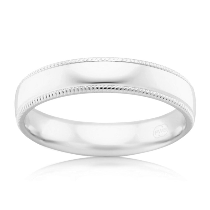 This Australian made 9ct white gold 3mm half round ring has a polished surface with a patterned edge and comfort curve fitting. Size N. Please contact us regarding special order enquiries for this ring. All ring sizes can be specially ordered with delivery