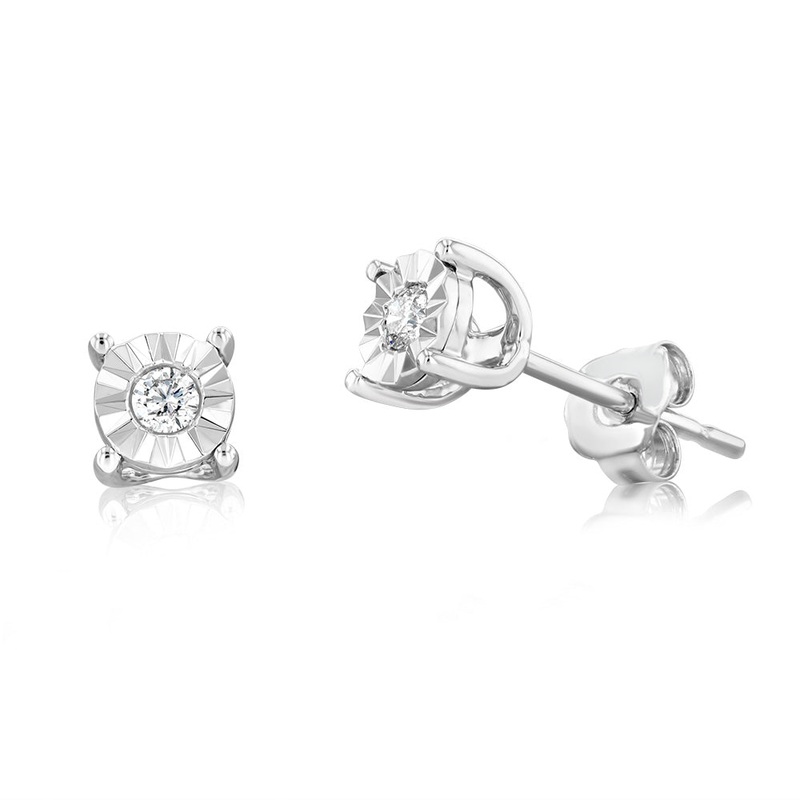 9ct White Gold 5 Points Diamond Stud Earrings