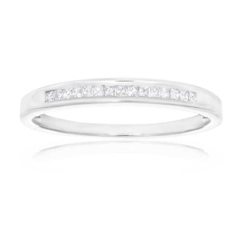 A modern staple, this 9ct White Gold Diamond Ring Set With 15 Princess Cut Diamonds is one of a kind. The white gold band is embellished with 15 princess cut diamonds in a well-defined sequence. Wear it as a wedding ring or a dress ring, it's versatile eno