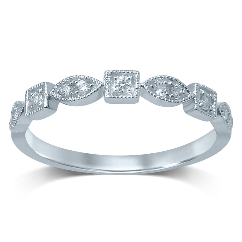 A stunning ring with a fancy, alternative design that leaves an impression. This 9ct White Gold Diamond Ring with 11 Brilliant Diamonds features an alternating pattern of white gold settings holding clear diamonds. The combination of diamond and white gold is elegant and pristine, expressing an enchanting beauty that makes this piece unforgettable.