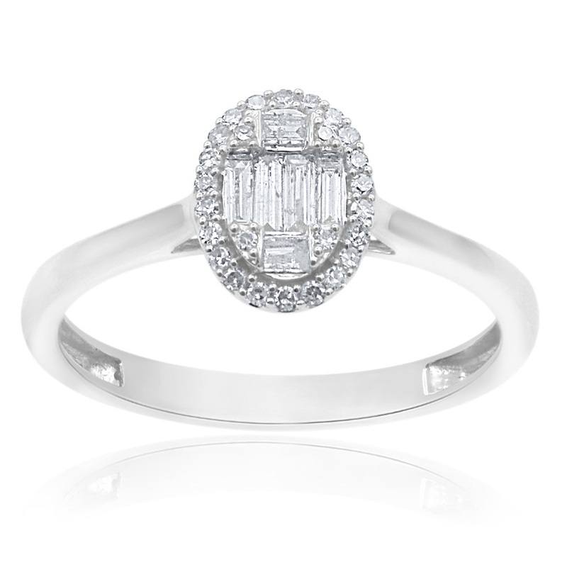 9ct White Gold Diamond Ring With 26 Brilliant and 6 Baguette Cut Diamonds