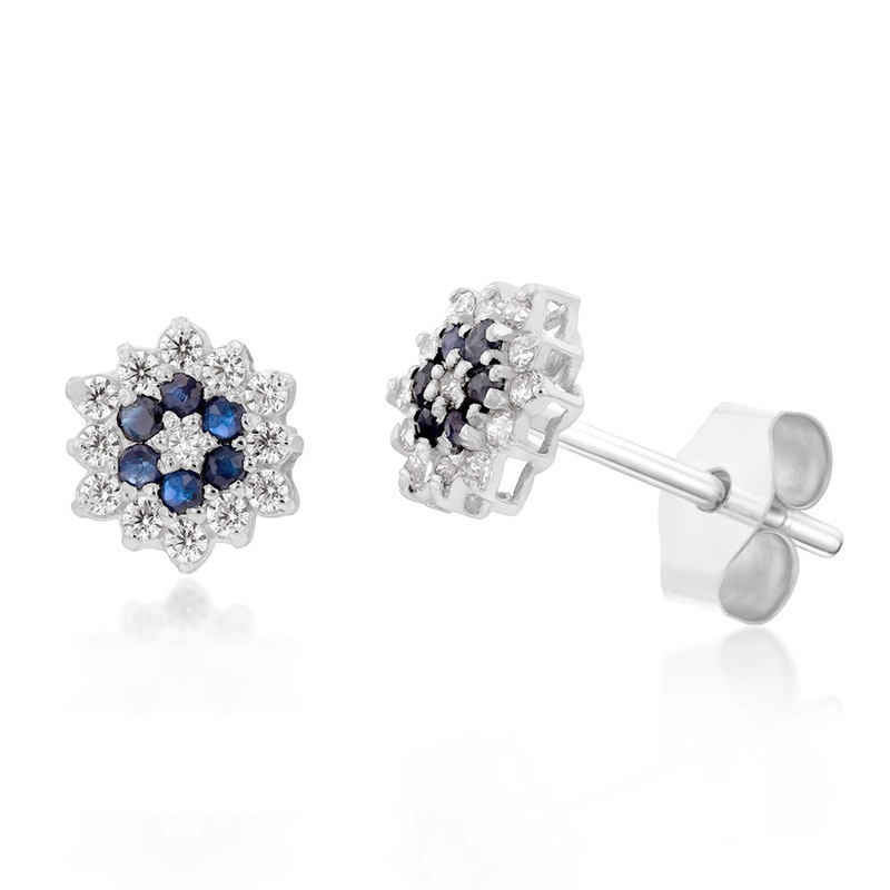 9ct White Gold Natural Sapphire and Zirconia Flower Studs