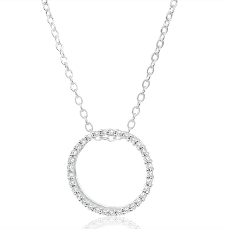 The ultimate statement piece, this 9ct White Gold Radiant Diamond Pendant is a must have. The circular ring design coated in diamonds will capture anyone’s attention with its full shimmer and bright glow. White gold provides the perfect backdrop, expressing a graceful colour and lightness to match the diamonds flawlessly.