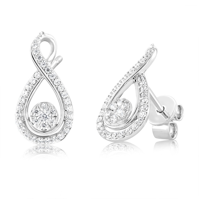 Indulge in the magnificence and allure of these 9ct White Gold white Zirconia Flower Infinity Stud Earrings. The popular infinity design is made unique with a captivating frame of zirconia stones. The studs offer a traditional flower design, seamlessly ble