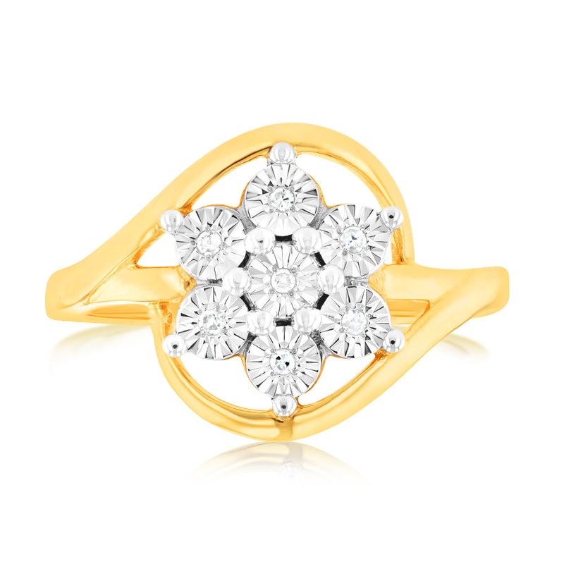 9ct Whitte & Yellow Gold Cross Over Diamond Ring