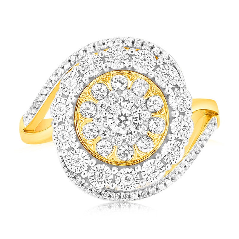 9ct Yellow Gold 1/4 Carat Diamond Ring with 85 Round Brilliant Cut Diamonds
