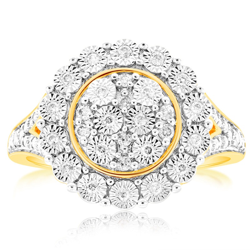 9ct Yellow Gold 1/5 Carat Diamond Disc Dress Ring