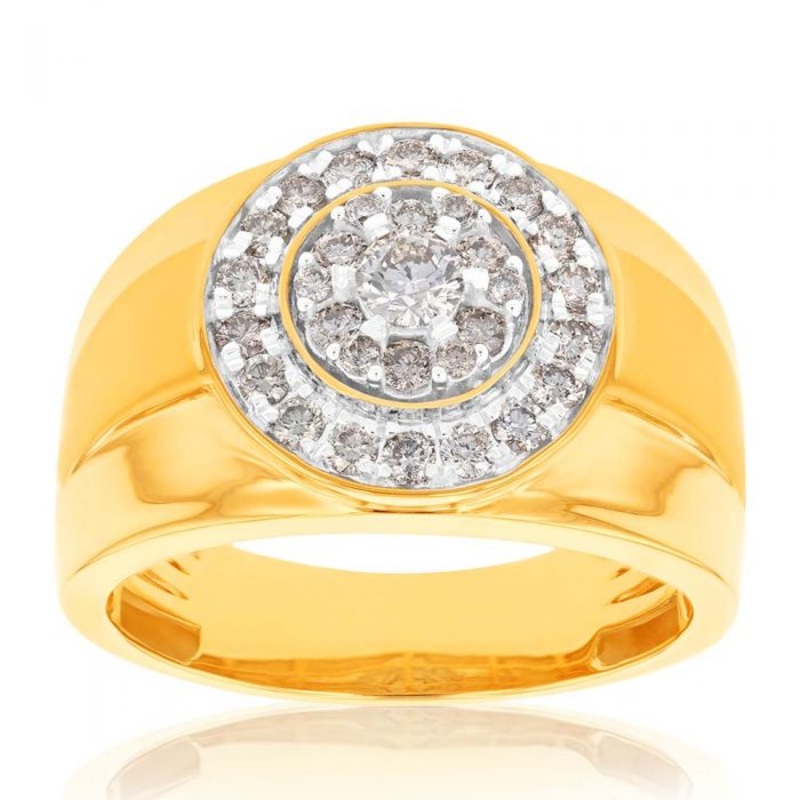 9ct Yellow Gold 1 Carat Diamond Gents Ring