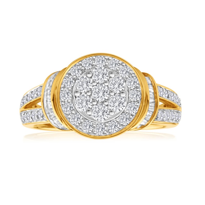Ooze pure opulence in this breathtakingly stunning Gold Diamond Channel Set Cluster Ring. Embellished with 1 carat of mixed cut diamonds arranged in a bewitching cluster setting and encased in sumptuous 9ct yellow gold, this ring is sure to make a statement.