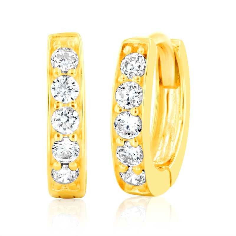 Add a little sparkle to your ears by wearing these 9ct Yellow Gold 10mm Zirconia Huggie Earrings that hug the ear lobe. You'll always want this yellow gold pair on because they are very comfortable to wear. These cute huggie earrings are sure to impress wi