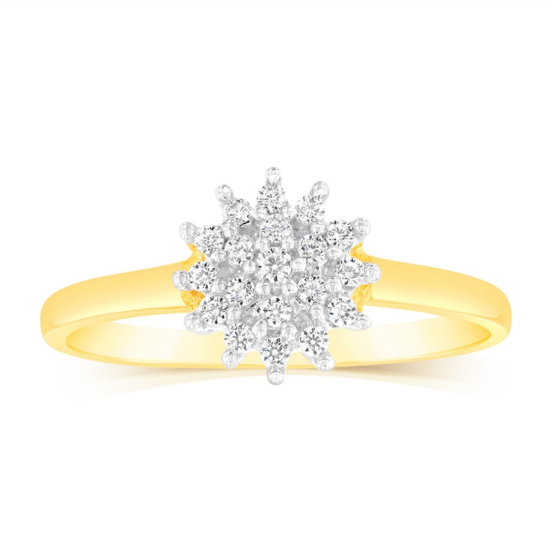 9ct Yellow Gold 19 Cubic Zirconia Flower Shaped Ring