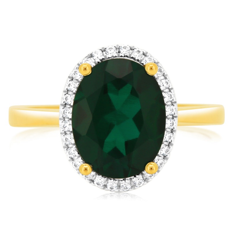 9ct Yellow Gold 2.9 Carat Created Emerald 28Cubic Zirconia Ring