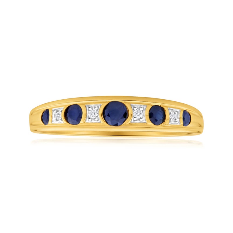 9ct Yellow Gold 5 Natural Sapphire and Diamond Ring
