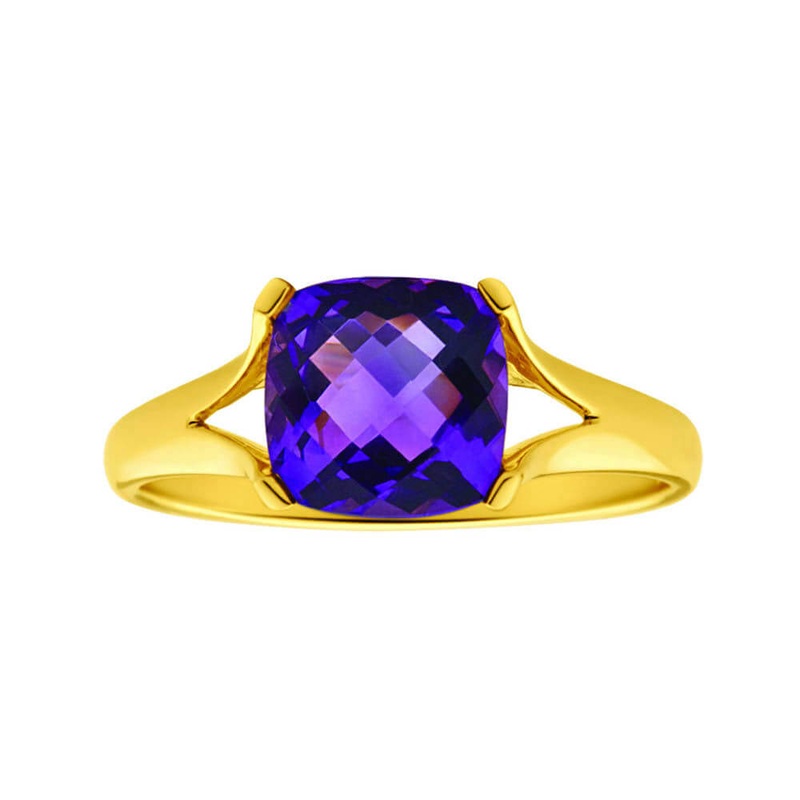 9ct Yellow Gold 8mm Cushion Cut Amethyst Ring
