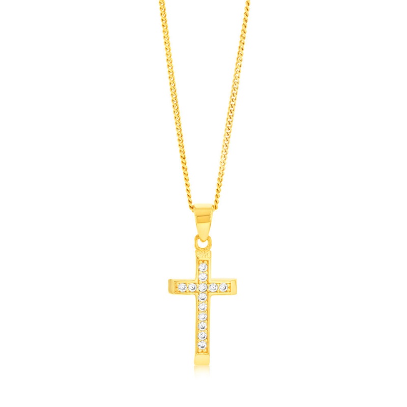 9ct Yellow Gold Cubic Zirconia Cross Pendant
