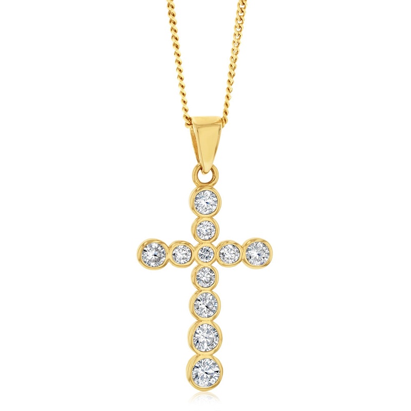 9ct Yellow Gold Cubic Zirconia On Cross Pendant
