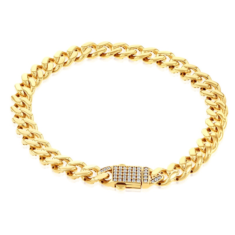 9ct Yellow Gold Cubic Zirconia On Curb 19cm Bracelet