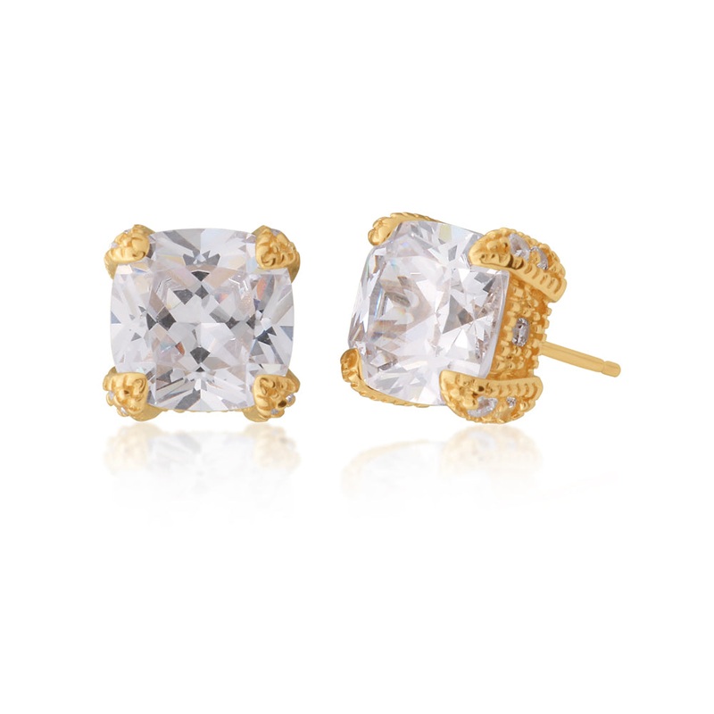 Step out in style each day with these stunning 9ct Yellow Gold Cushion Cut 7mm Studs with Side Stones. The earrings feature a unique setting that have intricate patterns and details. Boasting a dazzling square Zirconia that glistens in the light, these earrings are truly timeless. A staple in any jewellery wardrobe, these are a pair of earrings that cannot be missed.