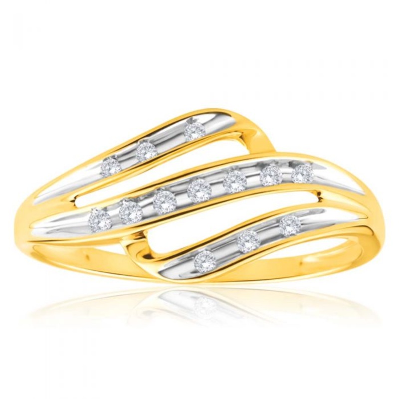 This stunning ring features a channel setting with three rows of 13 dazzling brilliant cut diamonds. The 9ct yellow gold ring is perfect for those dressier occasions.