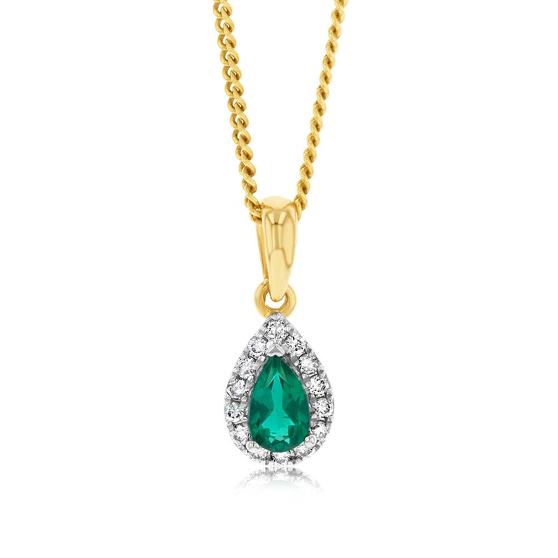 9ct Yellow Gold Diamond And Created Emerald Pendant