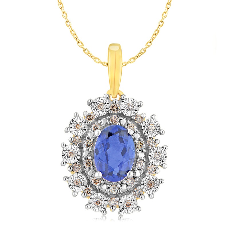 9ct Yellow Gold Diamond And Created Oval Sapphire Pendant