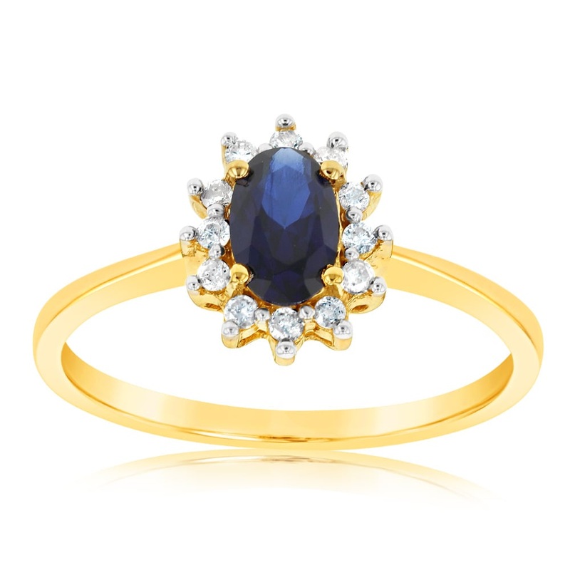 9ct Yellow Gold Diamond And Created Sapphire Ring