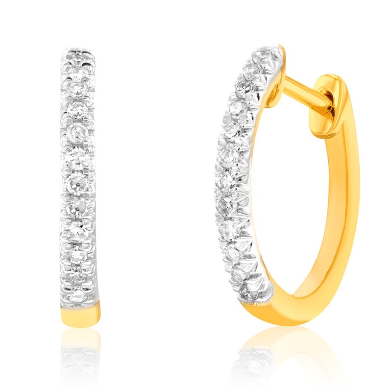 Embrace luxury with these stunning 9ct Yellow Gold Diamond Hoop Earrings with 24 Diamonds. Crafted in the gorgeous lustre of 9ct yellow gold, these earrings have a tone of luxury that is hard to beat. The hoops are embellished with the sparkle of brilliant