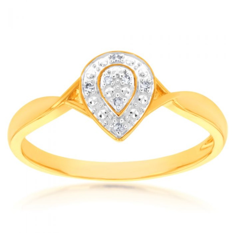 A dazzling diamond ring for a special someone in your life. This stunning 9-carat ring is the perfect way to show someone how much you care. The ring is set with pear shaped cluster of diamonds in the centre of the ring. The diamonds being arranged in a cluster creates a dazzling effect. The ring has been crafted from luxurious 9-carat yellow gold, which is both durable and stylish. This ring is the perfect gift for a special occasion, such as a birthday, anniversary or engagement. It is also a great way to add a touch of luxury to your everyday look.