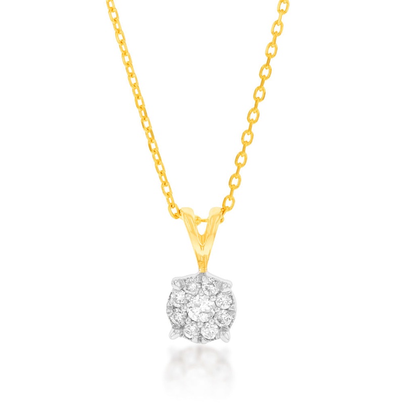 This 9ct Yellow Gold Diamond Pendant with Infinity Detail on Side Profile on 45cm Chain is a gorgeous luxury piece. This pendant is set with a stunning cluster of diamonds that dazzle and mesmerise above your neckline. On its side, you can see a lavish gol