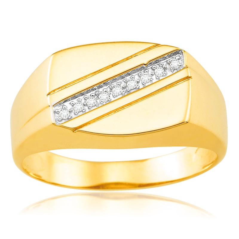 From contemporary design to vintage appeal, this 9ct yellow gold diamond ring set with 9 stunning brilliant diamonds has it all. Paid great attention to the details, the ring has an intricate design with precious diamonds encrusted diagonally in it. Its radiant glow and subtle yet sophisticated shimmer make the wearer stand out in a crowd.