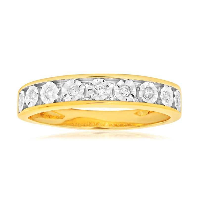 This sparkling eternity ring features 10 points of stunning diamonds in a brilliant cut, and is sure to please. Crafted in 9ct yellow gold.