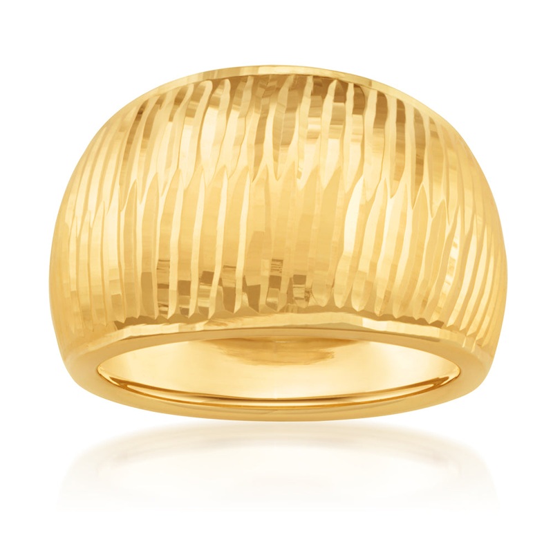 Allow this splendid 9ct Yellow Gold Dome Ring to win you over with its contemporary design. Offering a sense of style and elegance, this stylish piece is sure to become a firm favourite in your everyday jewellery collection. An embellished surface lets the