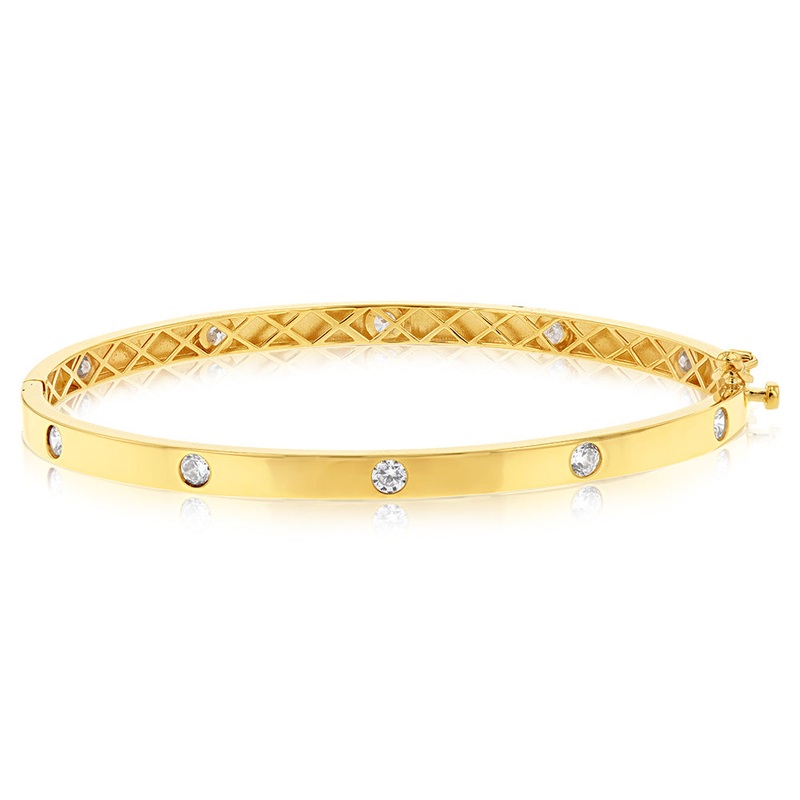 9ct Yellow Gold Double Sided Cubic Zirconia On Hinged Bangle