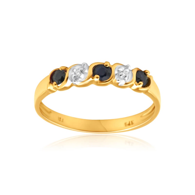 9ct Yellow Gold Exquisite Diamond + Natural Sapphire Ring