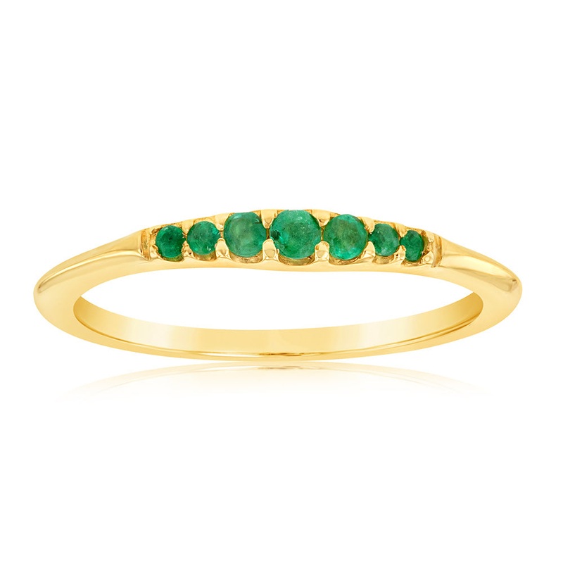 Embrace the elegance of this 9ct Yellow Gold Graduating Natural Emerald Ring, showcasing a divine layout of natural emeralds securely set in valuable 9ct yellow gold. This ring is shaped and polished to ensure a comfortable wear. The warm, welcoming radiance of this ring will complement any outfit, casual and formal. Flaunt this simple and defining ring for your next special event.