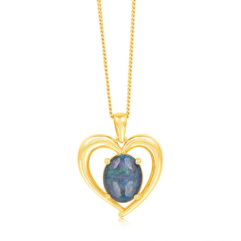 9ct Yellow Gold Oval Triplet Opal Heart Pendant