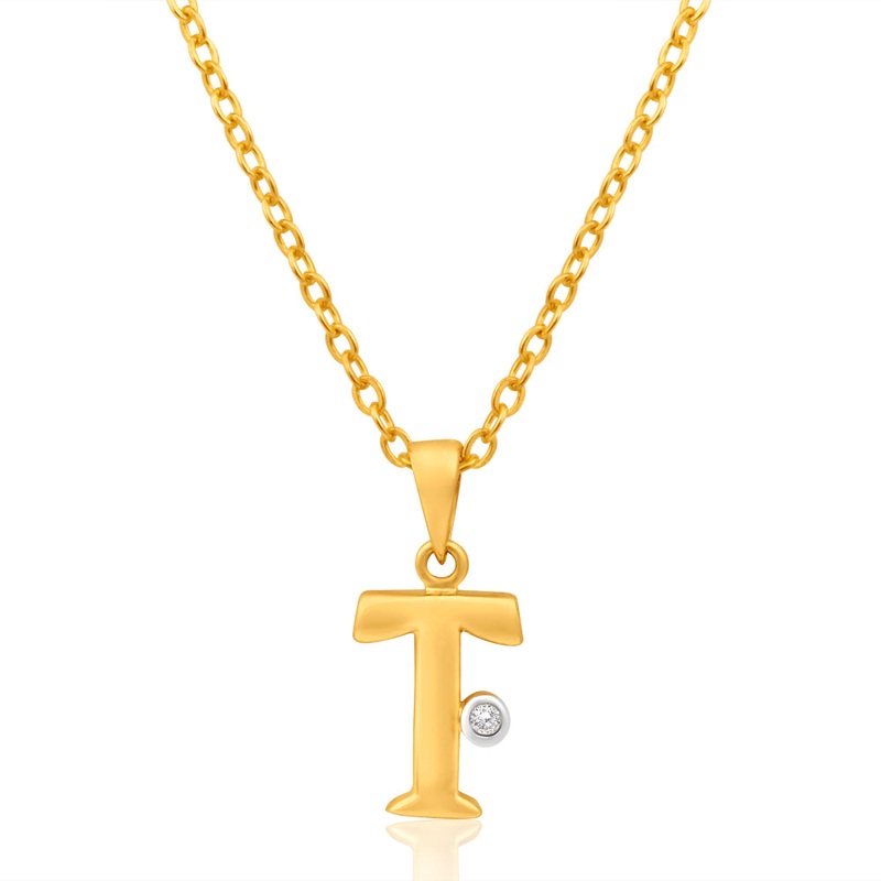 Wear your personality on a chain with this initial ‘T’ pendant. Featuring a sparkling diamond, the 9ct yellow gold pendant is sure to make a statement.