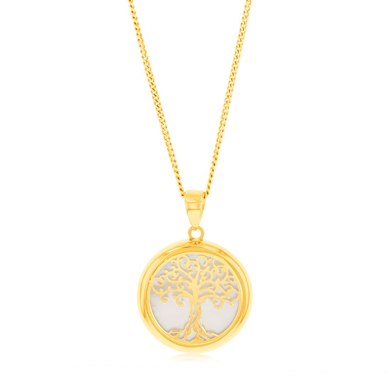 9ct Yellow Gold Tree Of Life Mother Of Pearl Pendant