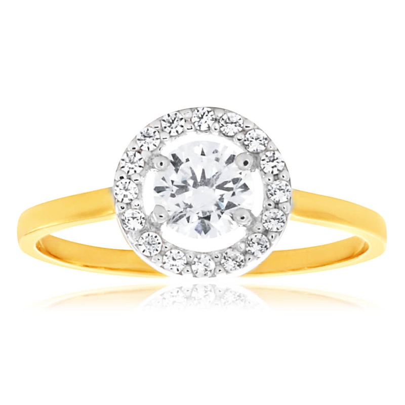 9ct Yellow Gold & White Gold Cubic Zirconia Round Halo Ring