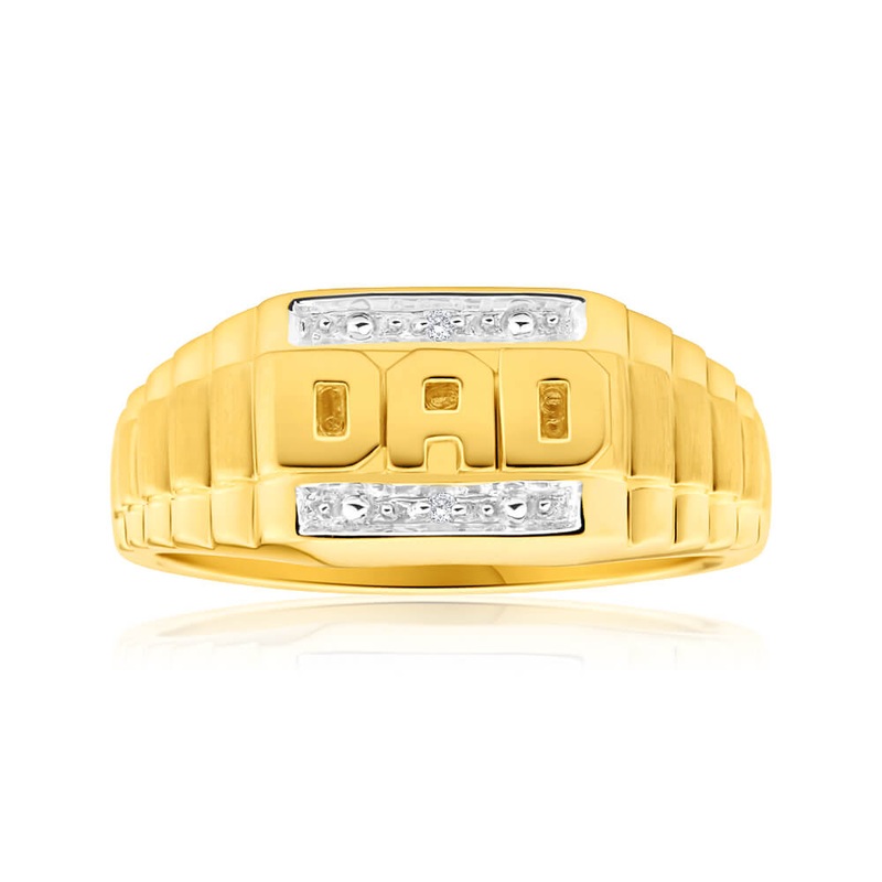 Whether you are stuck on what to get your dad for a birthday present or fathers day, this Gold and White Gold Diamond Ring ticks both boxes. With a stunning shiny lustre and DAD inscribed in a sweet, playful font, its a ring he will love, wear and of cours