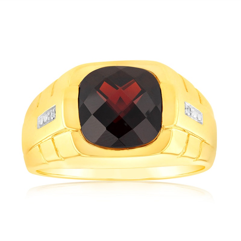 9ct Yellow Gold with 1Garnet & Small Diamond Men Ring