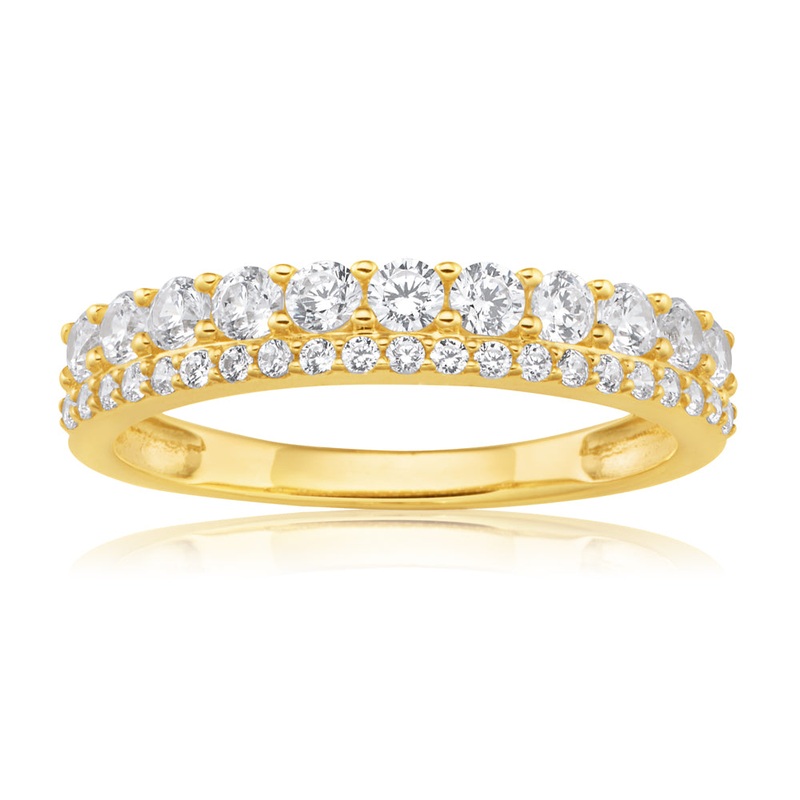 Show off your one true love with this stunning 9ct Yellow Gold Zirconia Eternity Straight Ring. Add to your collection of rings with this exquisite eternity band which features a row of beautiful cubic zirconia along its straight edge. The sparkling zirconia will dazzle from every angle and can be worn stacked with a bridal set effortlessly accentuating your other rings.This brilliant piece makes an ideal gift that will be treasured for years to come, it will show your thoughtfulness and love to that special person.