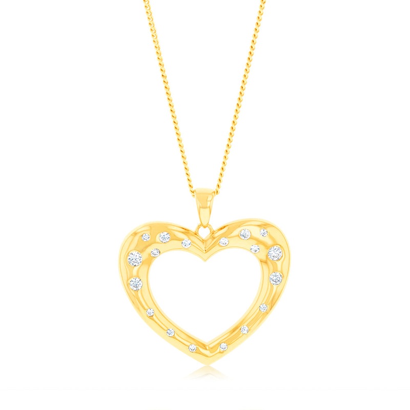 9ct Yellow Gold Zirconia Open Heart Pendant