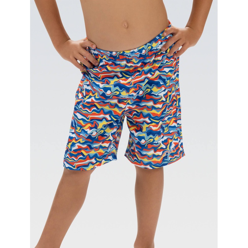 Limited Availability, get it while it lasts!The Little Dolfin Boys' Surfin Swim Trunks are designed for adventurous little ones who love to make a splash! Featuring an organic, wavy striped print in vibrant neon colors, these trunks not only look cool but