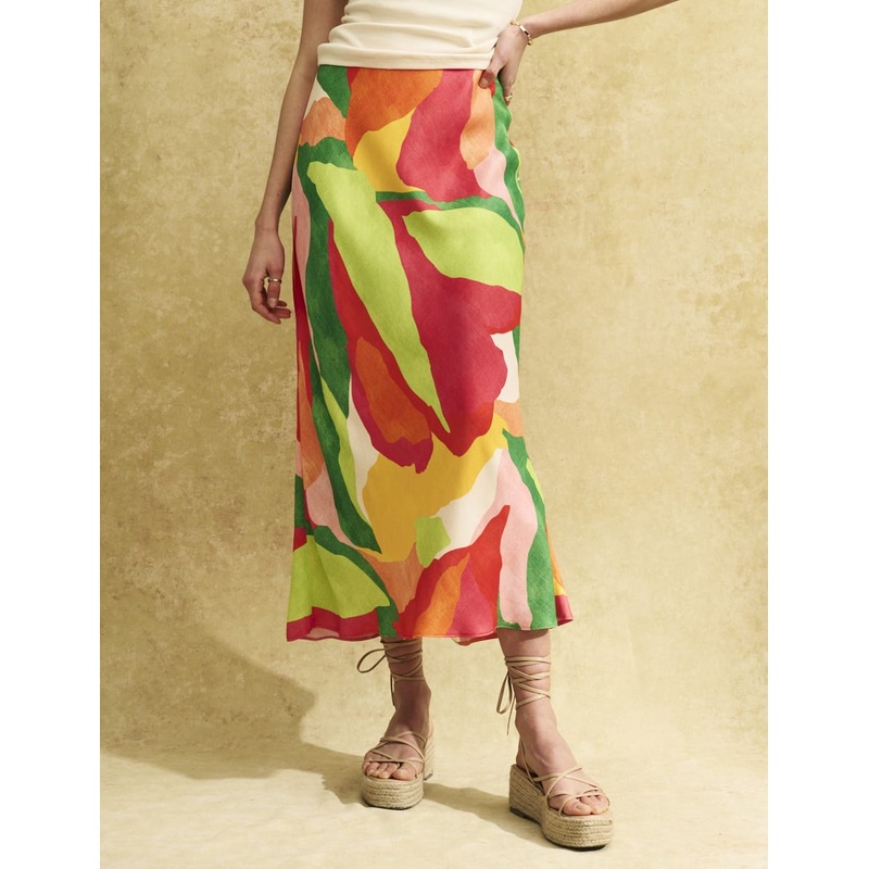Our sell-out Mila skirt is back in an abstract leaf print. Its made in a body-skimming cut that flares at the hem. Style yours with strappy espadrilles and eat alfresco. Elasticated waist Bias cut