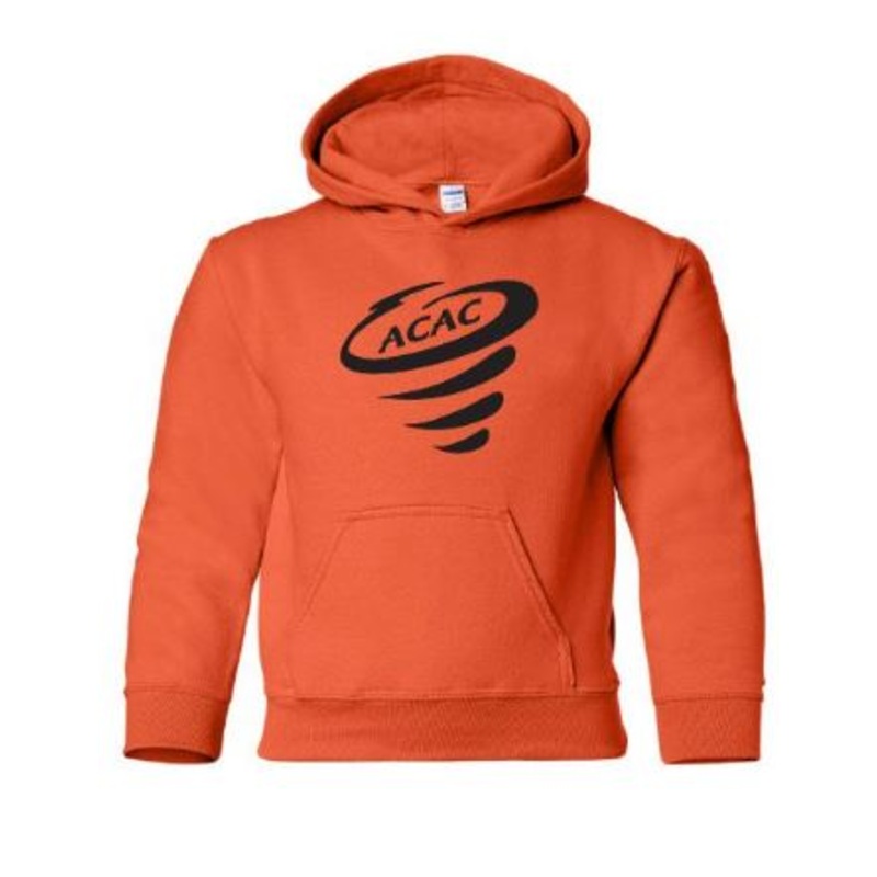 Gildan, 8-ounce, 50/50 cotton/polyDouble-needle stitching at waistband and cuffsDouble-lined hoodNo drawcord at hood1x1 rib knit cuffs and waistband with spandexFront pouch pocketACAC Logo on center front- FINAL SALE