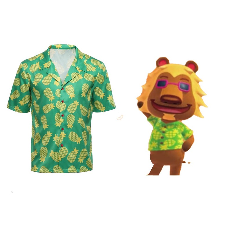 Adult Game Animal Crossing Cosplay T Shirt Bud Cosplay Hawaiian Short Sleeve Shirts Costume Halloween Carnival CostumeMaterialTwill satinPackage included:Shirt