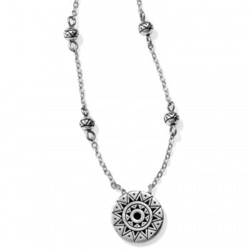 A journey to Africa inspired this boho luxe pendant necklace, with patterns echoing ancient tribal motifs and designs.Closure: Lobster ClawLength: 16" - 18" AdjustablePendant Drop: 1/2"Finish: Silver plated