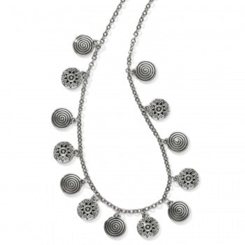 Inspired by their journey to Africa, our designers created this disk-adorned necklace. With echoes of tribal motifs, we love its boho luxe feel.Closure: Lobster ClawLength: 15" - 17" AdjustablePendant Drop: 1/2"Finish: Silver plated